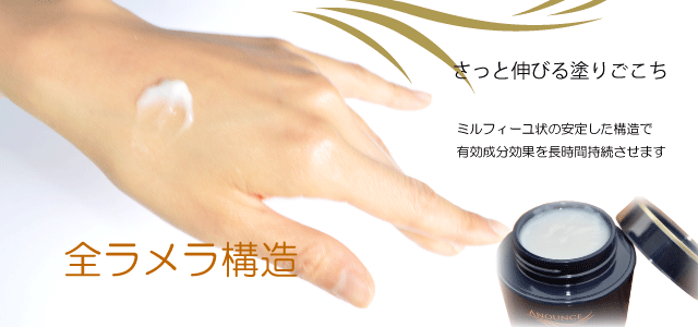 誰にでも抵抗感なく使えるフルラメラ構造(液晶乳化)を実現したエイジングクリームです。
